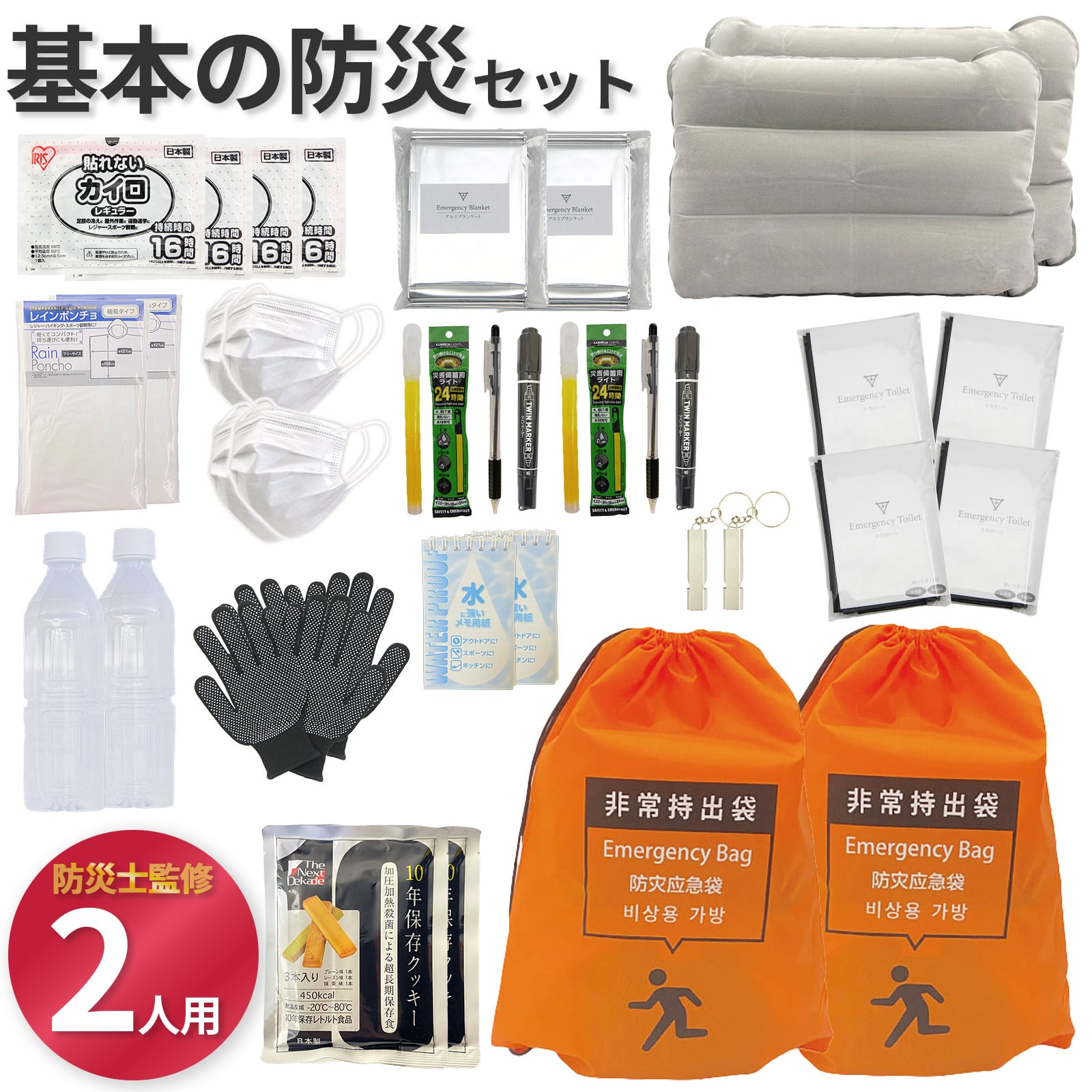 【無料定期便対象】基本の防災セット 2人用【プロの防災士監修】 一次避難用 地震対策 災害備蓄 防災用品 非常用持出袋 備品 グッズ セット 品揃えNo.1