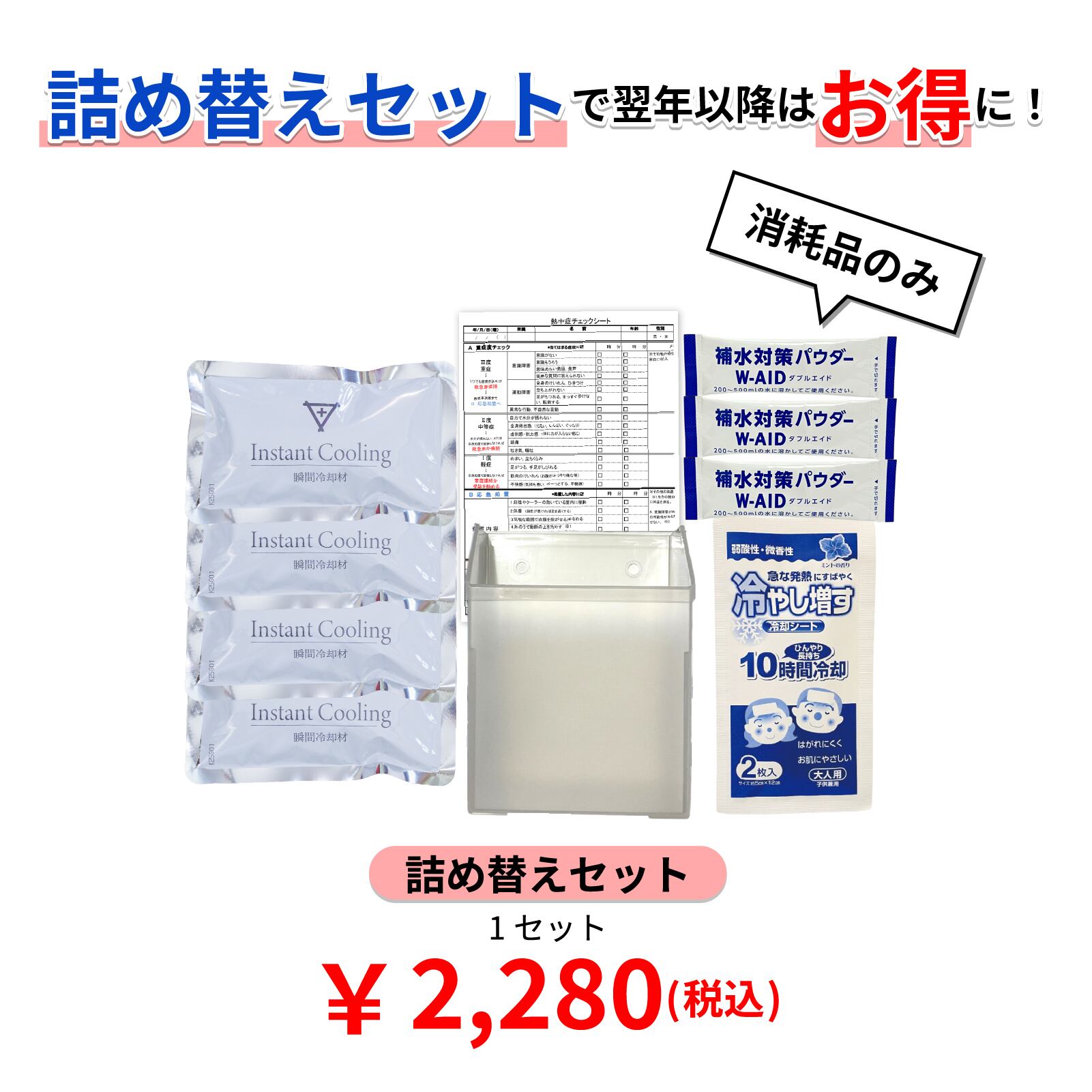 熱中症の予防・軽度の対応セット!スリムサイズタイプ!